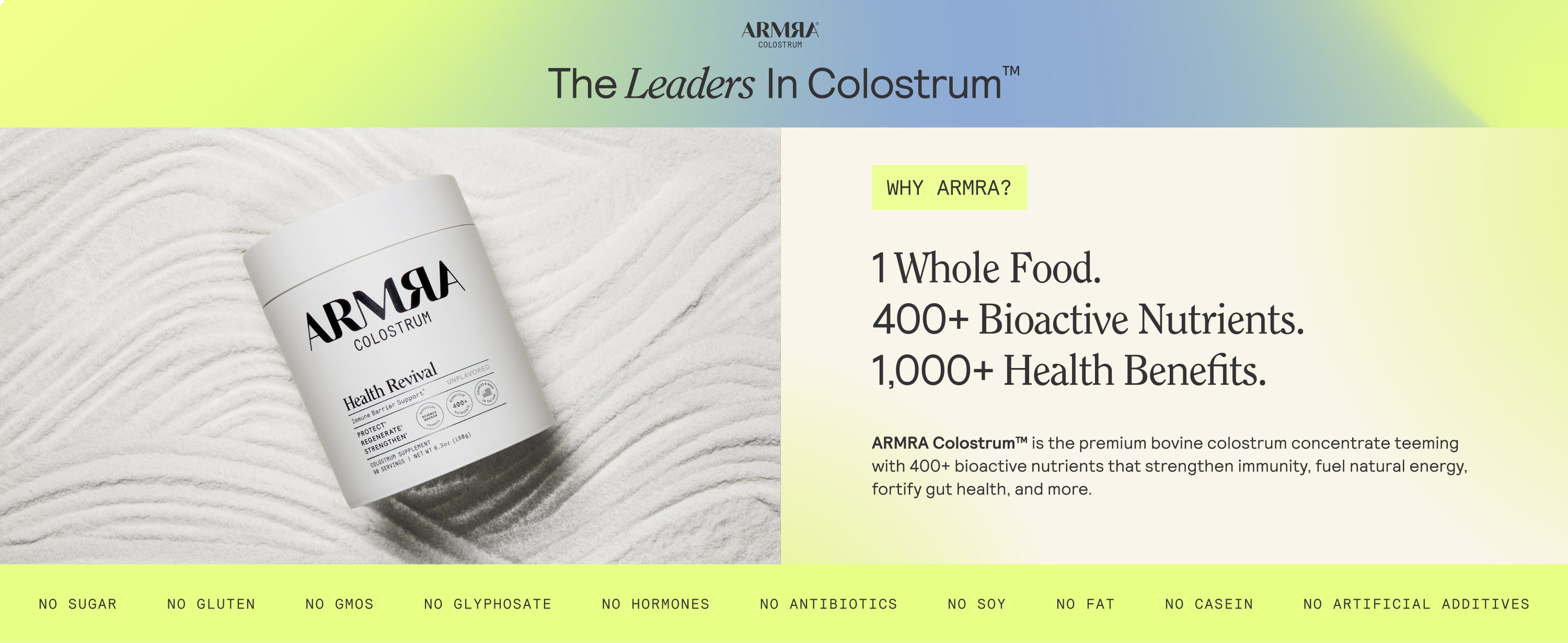 Unflavored:Proprietary ARMRA Colostrum®Concentrate (Bovine). Contains: Milk.